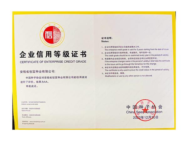 AA级企业信用等级证书